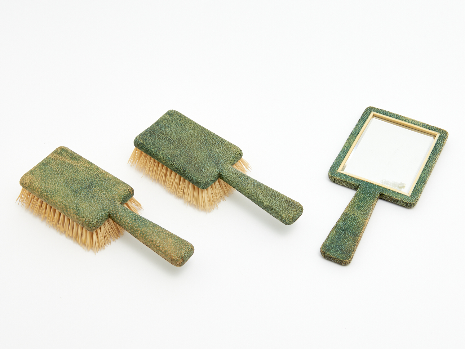 THREE ART DECO SHAGREEN DRESSING TABLE ITEMS 23CM (LONGEST)LEONARD JOEL LOCAL DELIVERY: SMALL