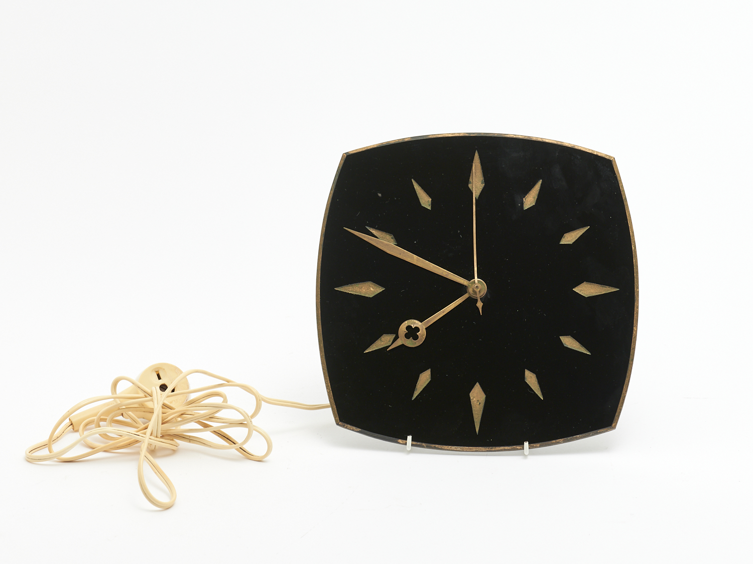 A RETRO BLACK GLASS WALL CLOCK H.25 X W.25CM, LEONARD JOEL LOCAL DELIVERY: SMALL