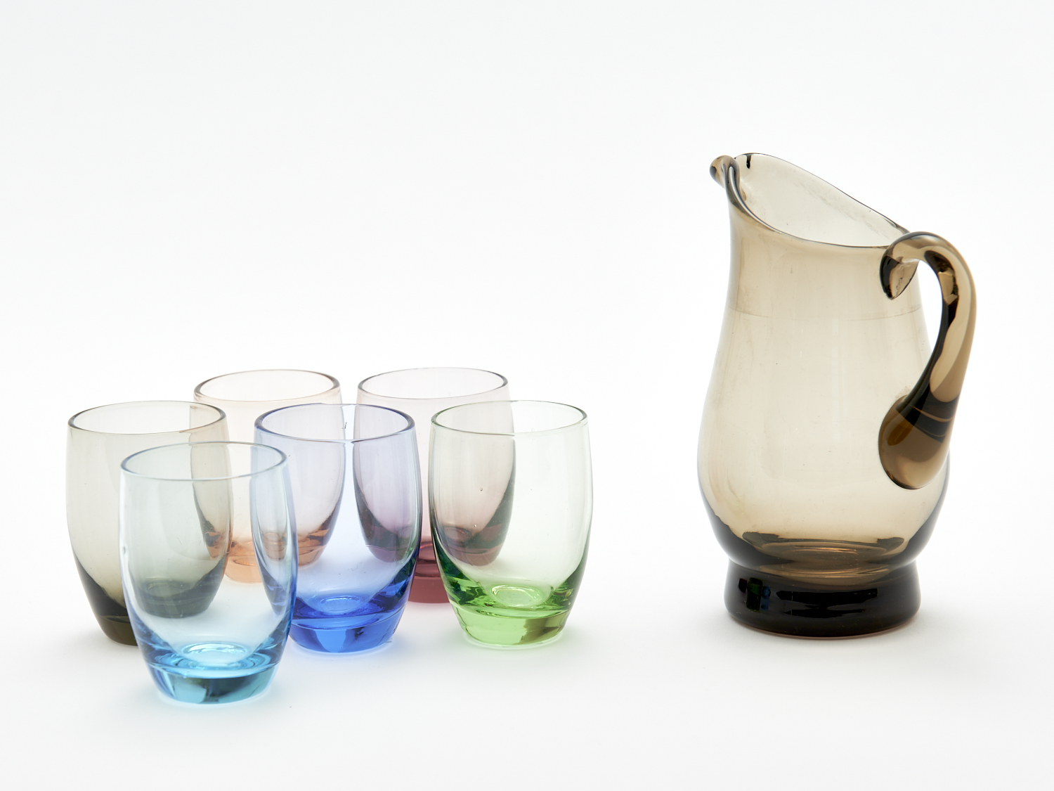 A RETRO SEVEN PIECE HARLEQUIN MINIATURE SHOT GLASS AND DECANTER SET H.14CM (DECANTER), LEONARD JOEL LOCAL DELIVERY: MEDIUM