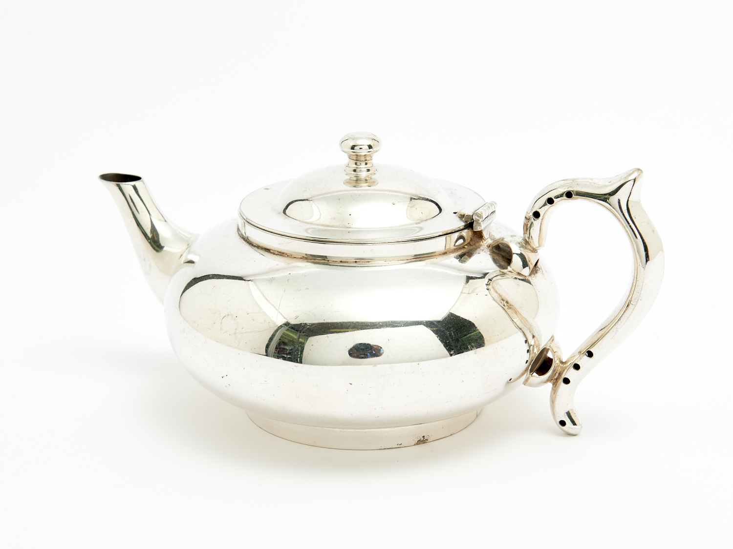 A SIX CUP ROBUR SILVER PLATE TEAPOT WITH ORIGINAL INFUSER H.12CM, LEONARD JOEL LOCAL DELIVERY: SMALL