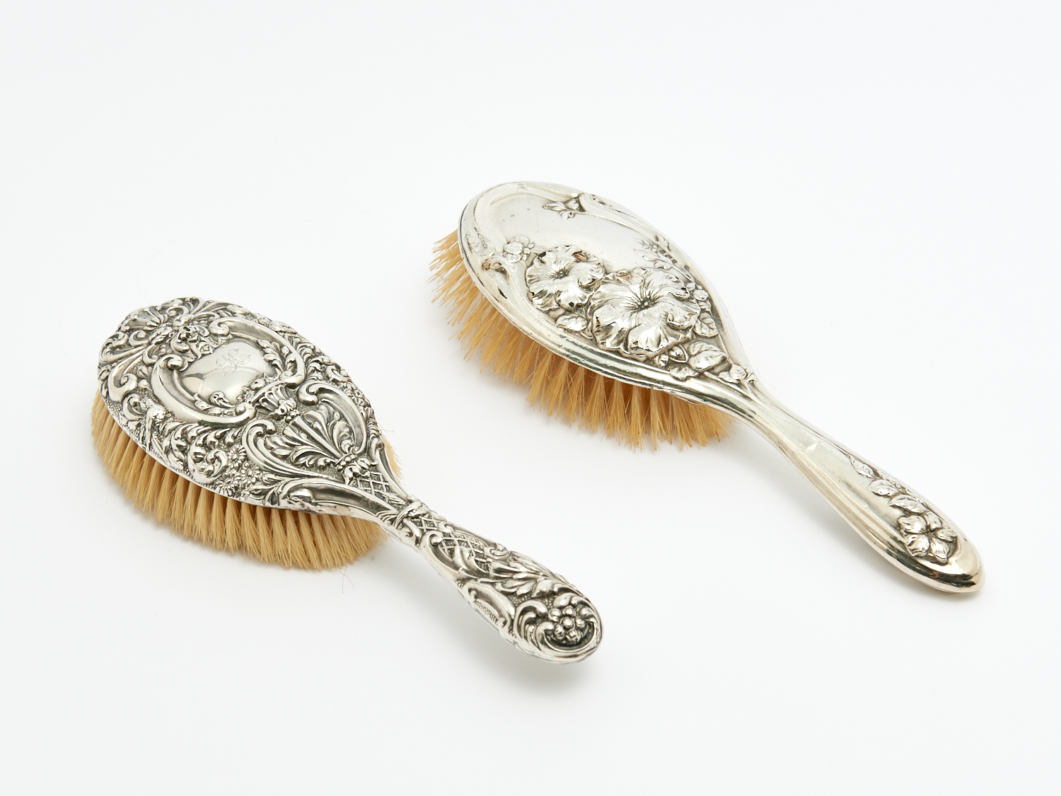 TWO ENGLISH ART NOUVEAU STERLING SILVER BRUSHES L.28CM (LONGEST), LEONARD JOEL LOCAL DELIVERY: SMALL