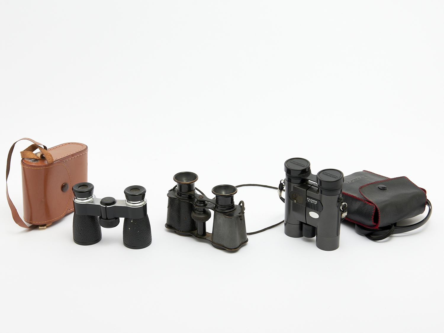 THREE SETS OF BINOCULARS H.9 X W.24CM (FUJINON) AND H.4 X W.30CM (CARTON), LEONARD JOEL LOCAL DELIVERY: MEDIUM