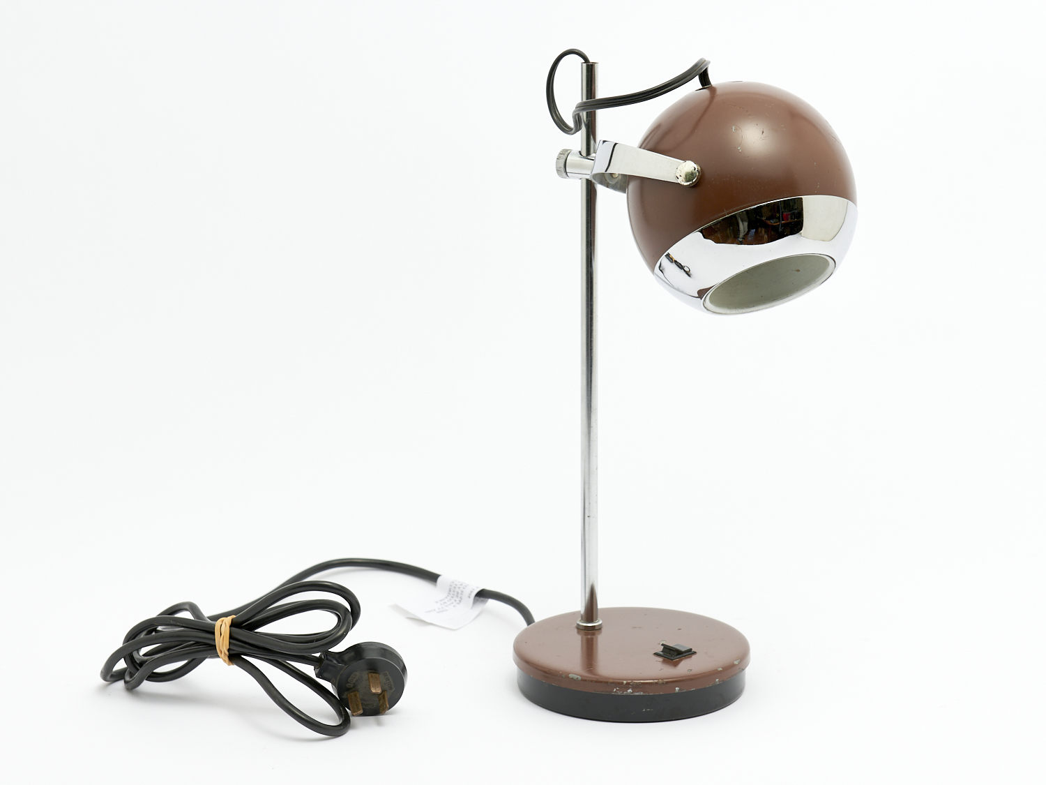 AN ORIGINAL CHROME AND BROWN METAL ADJUSTABLE EYEBALL STANDARD DESK LAMP (A/F) H.35CM, LEONARD JOEL LOCAL DELIVERY: SMALL