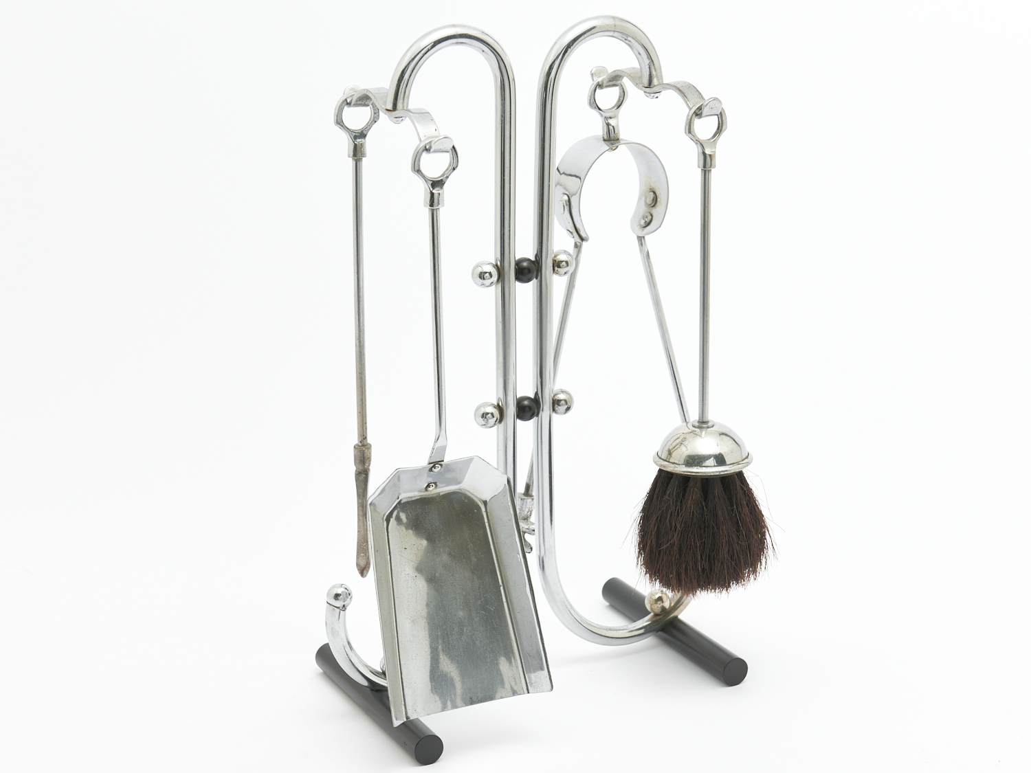 AN ART DECO CHROME FOUR PIECE FIRE TOOL SET H.41CM, LEONARD JOEL LOCAL DELIVERY: MEDIUM