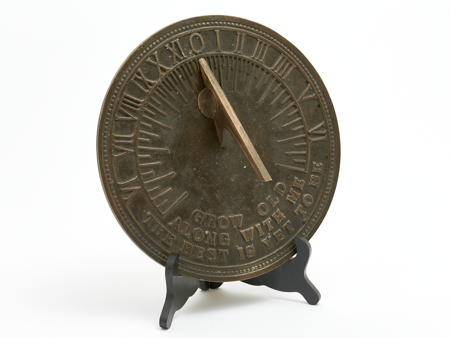AN EARLY 20TH C. SOLID BRONZE SUNDIAL "GROW OLD ALONE WITH ME THE BEST IS YET TO BE" DIA.22CM, LEONARD JOEL LOCAL DELIVERY: SMALL