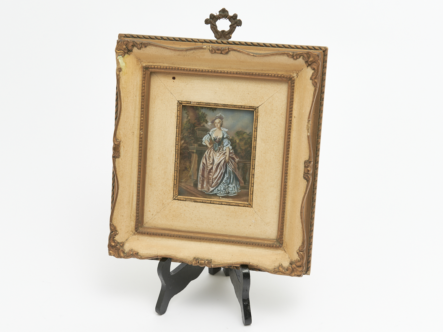 AN ANTIQUE HAND-PAINTED PORTRAIT OF A LADY IN GILT FRAME H.24 X W.22CM, LEONARD JOEL LOCAL DELIVERY: SMALL
