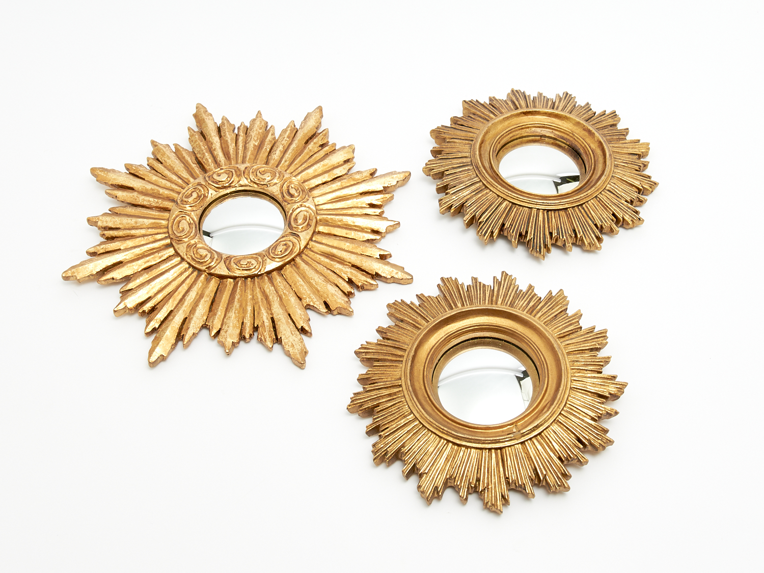 THREE SUNBURST CONVEX MIRRORS DIA.26CM (LARGEST), LEONARD JOEL LOCAL DELIVERY: MEDIUM