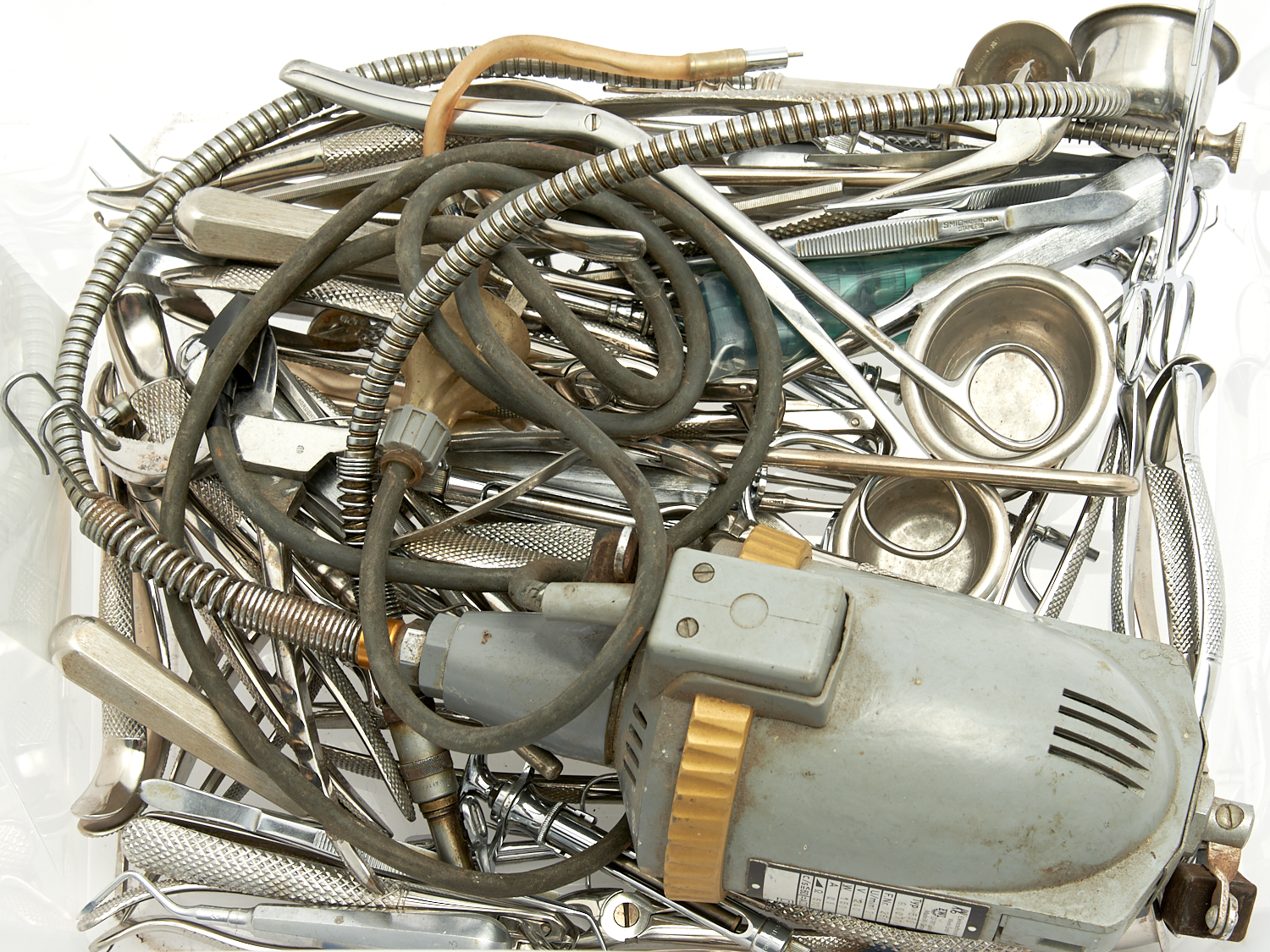 LARGE COLLECTION OF VINTAGE 1950S STAINLESS STEEL DENTIST TOOLS INCLUDING DRILL, LEONARD JOEL LOCAL DELIVERY: MEDIUM