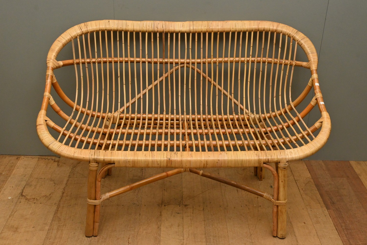 A VINTAGE STYLE RATTAN SOFA (85H X 132W X 66D CM) (LEONARD JOEL DELIVERY SIZE: X-LARGE)