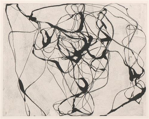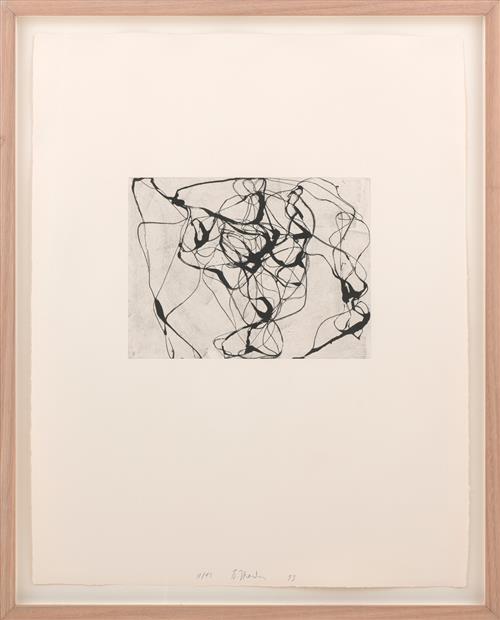 "Brice Marden emerged as a significant American minimalist painter in the 1960s, but after a series of voyages to Asia and Greece in the 1980s his work began to feature calligraphic, gestural lines instead of monochromatic fields of muted colour. In After Botticelli, Marden adapts the serpentine lines of the Florentine Renaissance master Sandro Botticelli. Botticelli is celebrated for his use of line both to ornament and to convey movement-particularly when representing wind, water, and billowing drapery or hair. Here that line is utilised in a series of abstract etchings, whose twisting, desultory compositions create a sense of kinaesthetic energy."