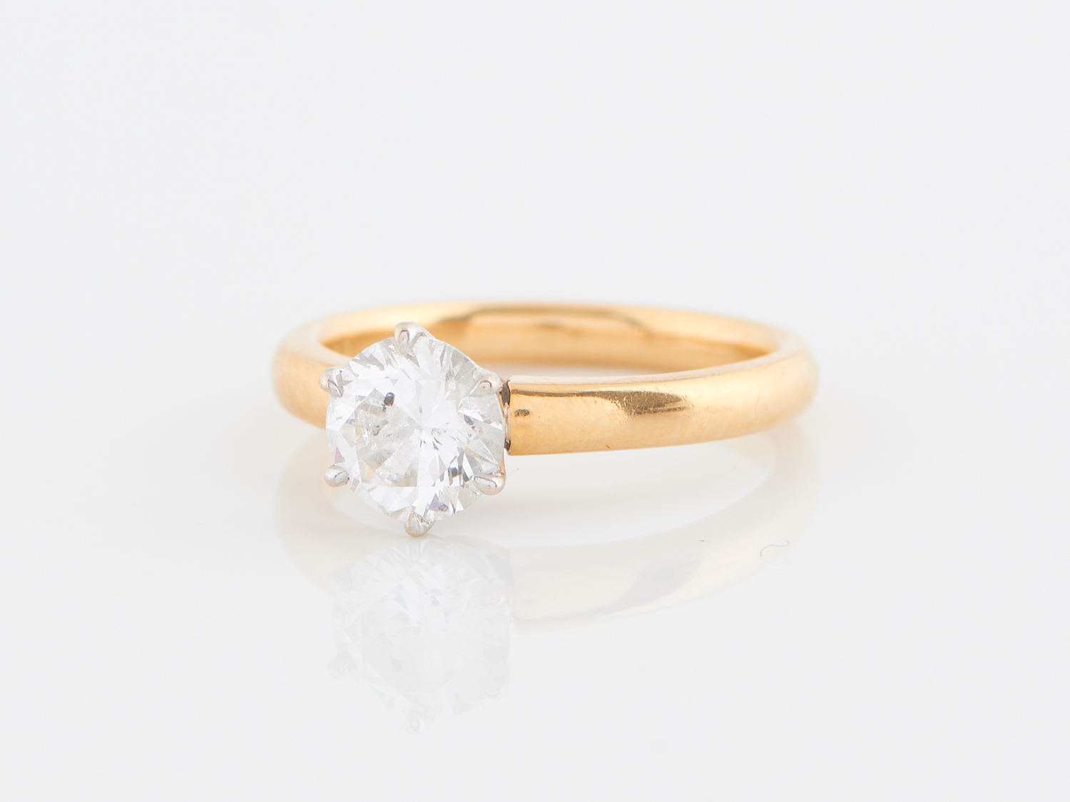 A SOLITAIRE DIAMOND RING IN 18CT GOLD, THE DIAMOND TOTALLING 1.20CTS (E, I1), RING SIZE L/M, 4.6GMS, ACCOMPANIED WITH VALAUTION AND G.I.A NUMBER 6211147534