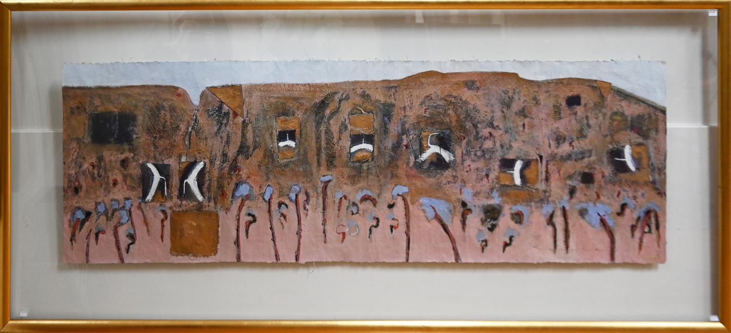 BARNEY ELLAGA, ALAWA COUNTRY 1995, ACRYLIC ON CANVAS, STAMPED VERSO ALCASTON HOUSE GALLERY, 94 X 192CM PROVENANCE: THE NATIONAL AU...