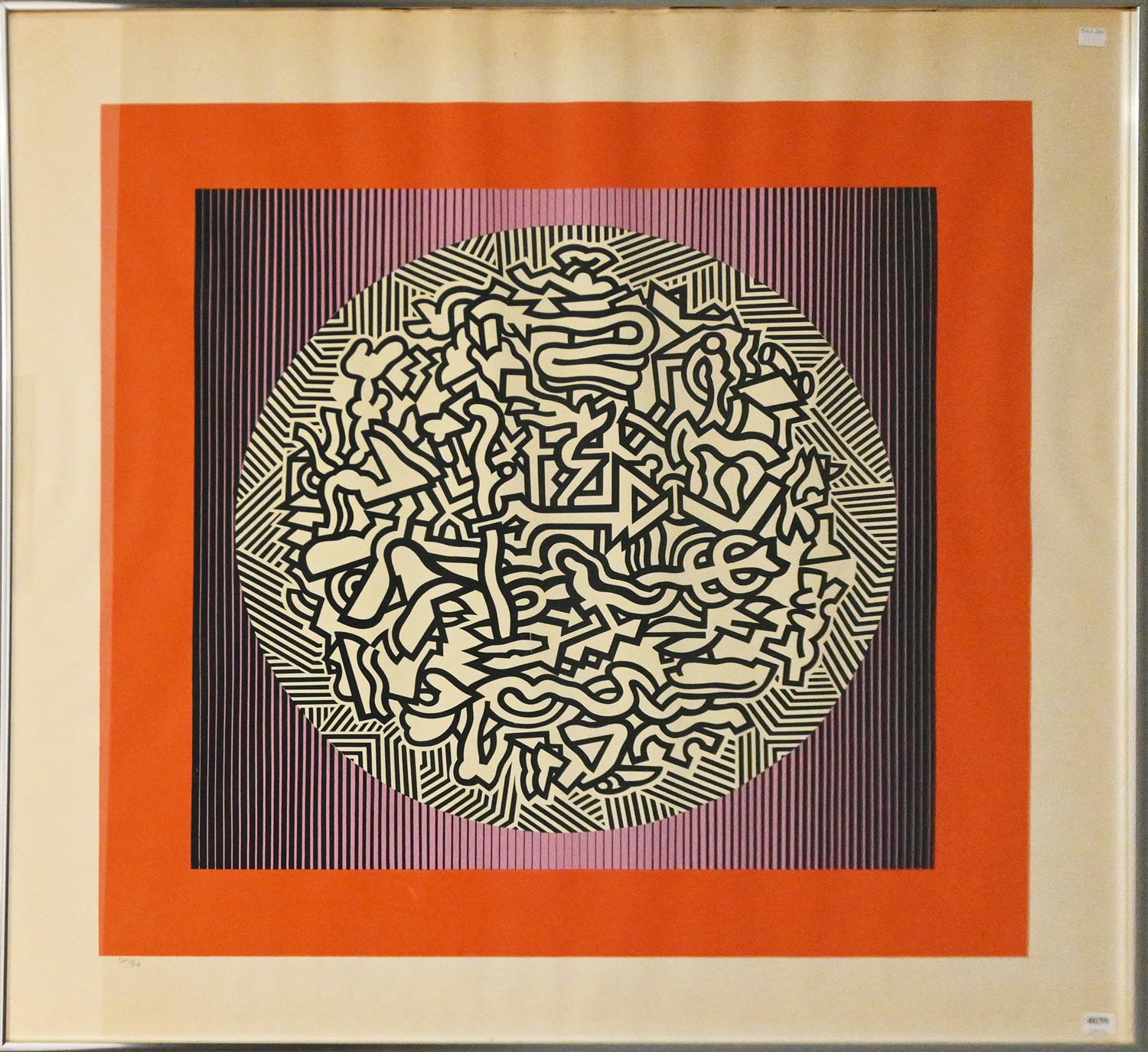 LIN ONUS, GUMBIRRI GARGANINGI 1991, SCREENPRINT ED. 27/85, 49.5 X 74CM, FRAME SIZE: 78 X 101CM PROVENANCE: THE NATIONAL AUSTRALIA...