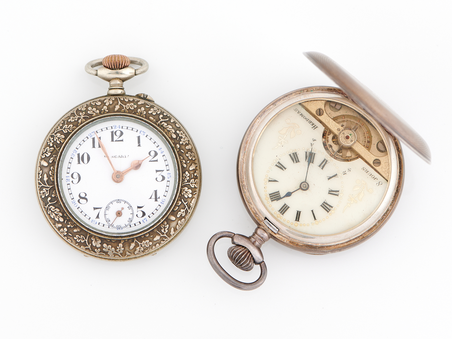HEBOMAS, A HUNTINGCASED POCKETWATCH AND AN ORNATE OPENFACE POCKETWATCH, HUNGARIA