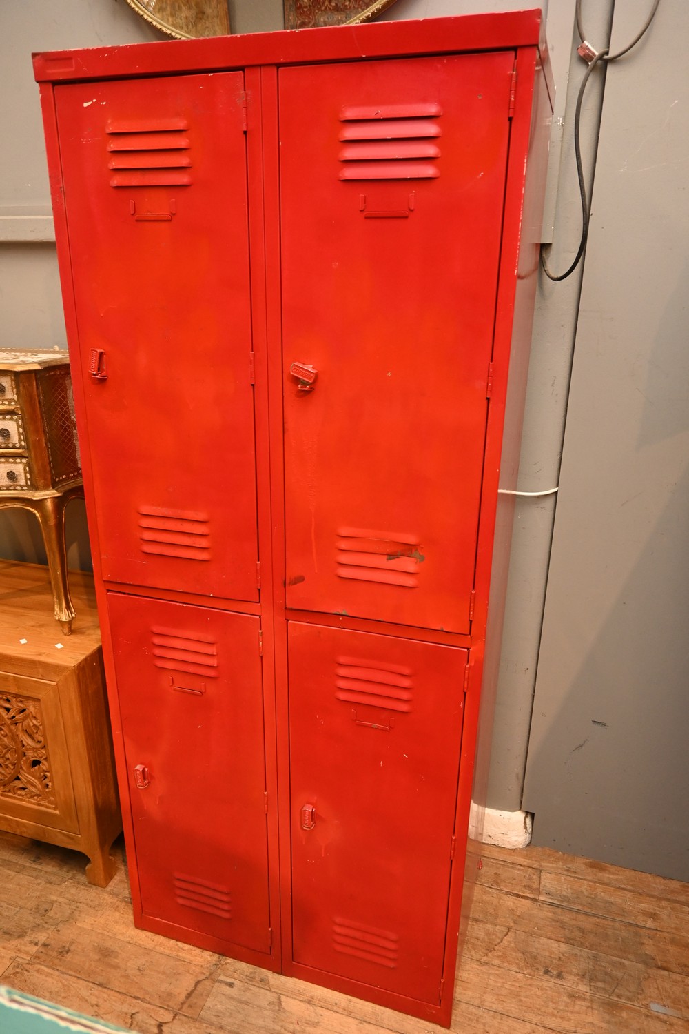 A RETRO PAINTED FOUR DOOR LOCKER BY COFORM (A/F) (181H X 77W X 46D CM) (PLEASE NOTE THIS HEAVY ITEM MUST BE REMOVED BY CARRIERS AT THE CUSTOMER'S EXPENSE. LEONARD JOEL STAFF CANNOT ASSIST CARRYING THIS ITEM) (X-LARGE ITEM)