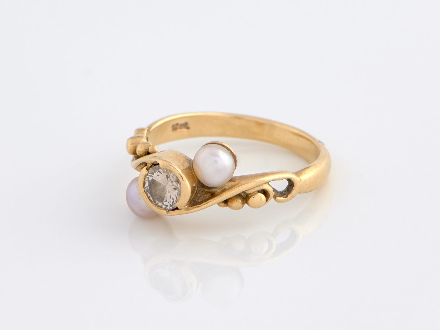 GARY HOLLOWAY, A CUSTOM CHAMPAGNE DIAMOND AND PEARL RING IN 18CT GOLD, RING SIZE O, 4.5GMS