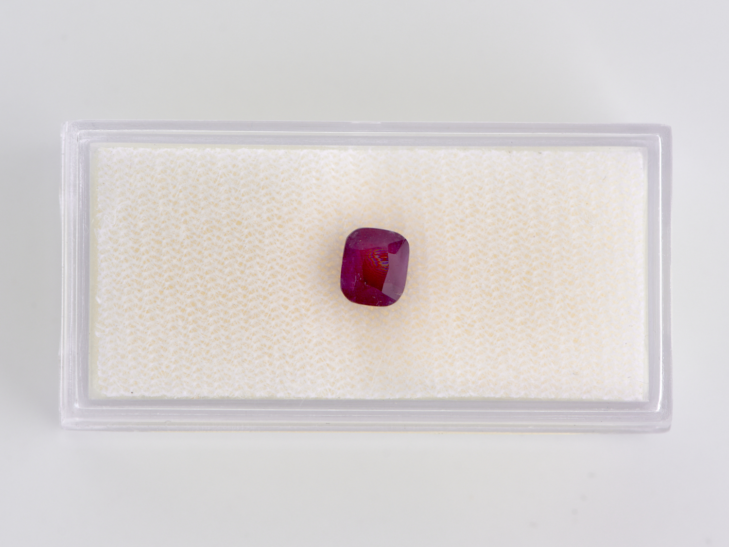 A LOOSE CUSHION CUT UNHEATED MOZAMBIQUE RUBY OF 1.57CTS, ACCOMPANIED BY CERTIFICATE