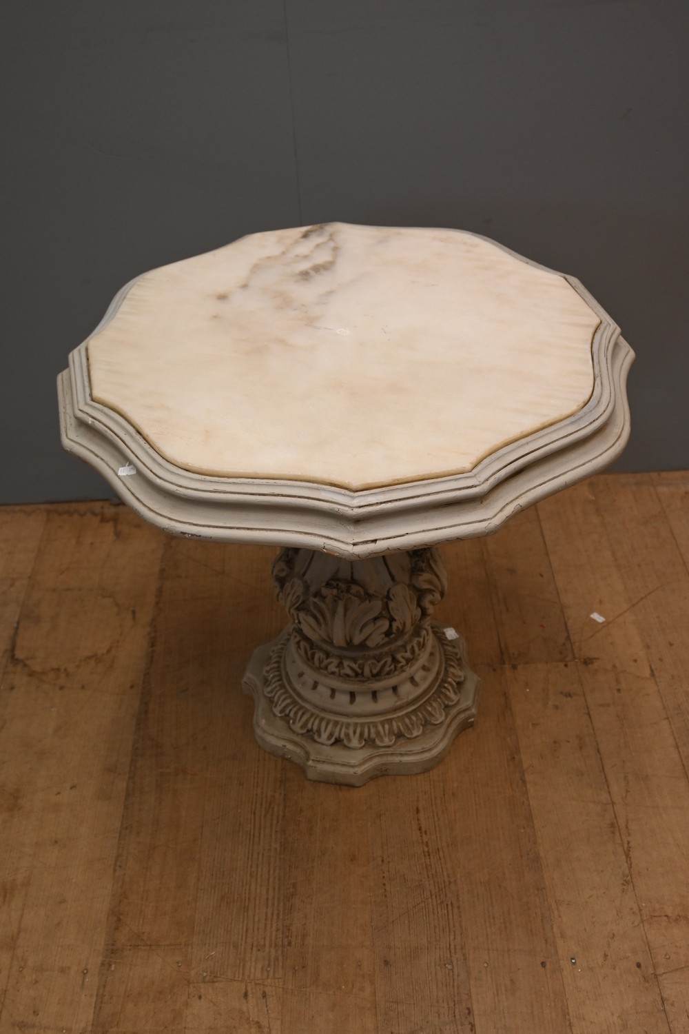 A CARVED LIMED OAK PEDESTAL TABLE (A/F) (60H X 65DIA CM) (LEONARD JOEL DELIVERY SIZE: X-LARGE)