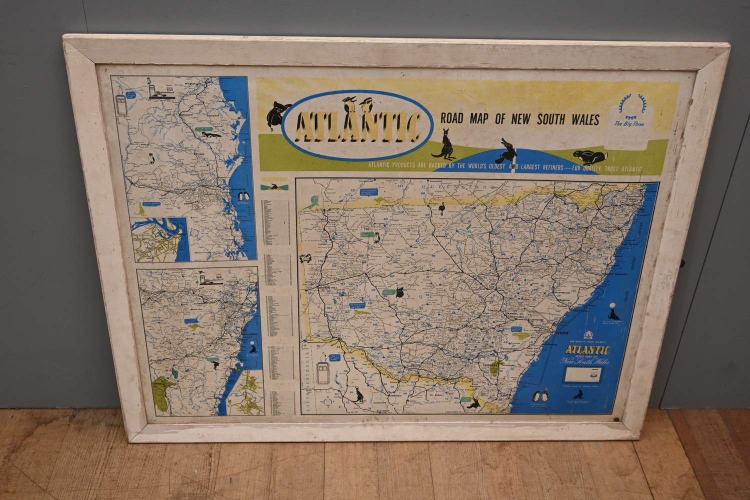 A VINTAGE MAP OF NSW FOR ATLANTIC PETROL (A/F) (84 X 107 CM) (LEONARD JOEL DELIVERY SIZE: LARGE)