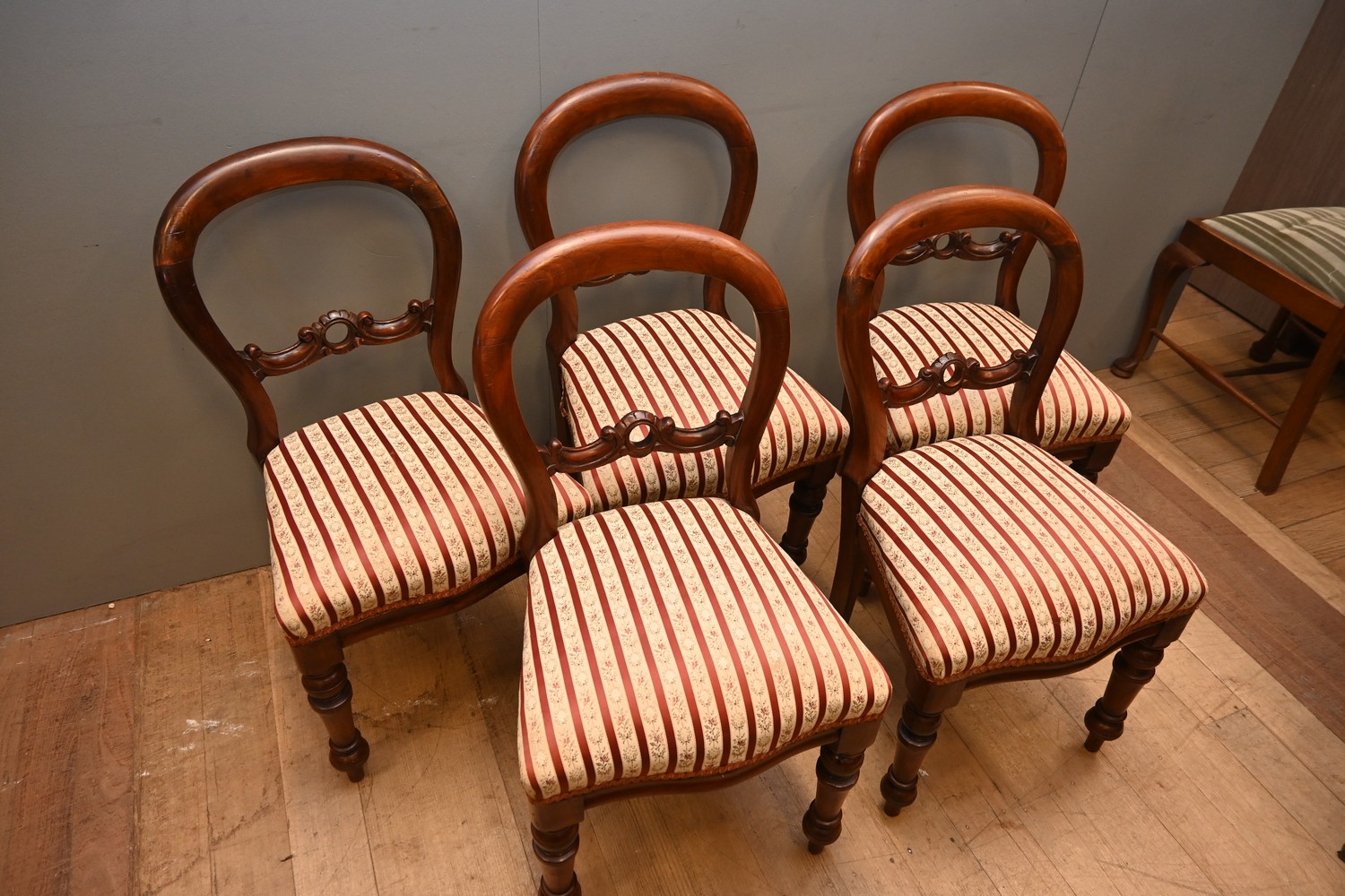A SET OF FIVE VICTORIAN CEDAR BALLOON-BACK CHAIRS (84H X 45W X 45D CM) (LEONARD JOEL DELIVERY SIZE: X-LARGE)