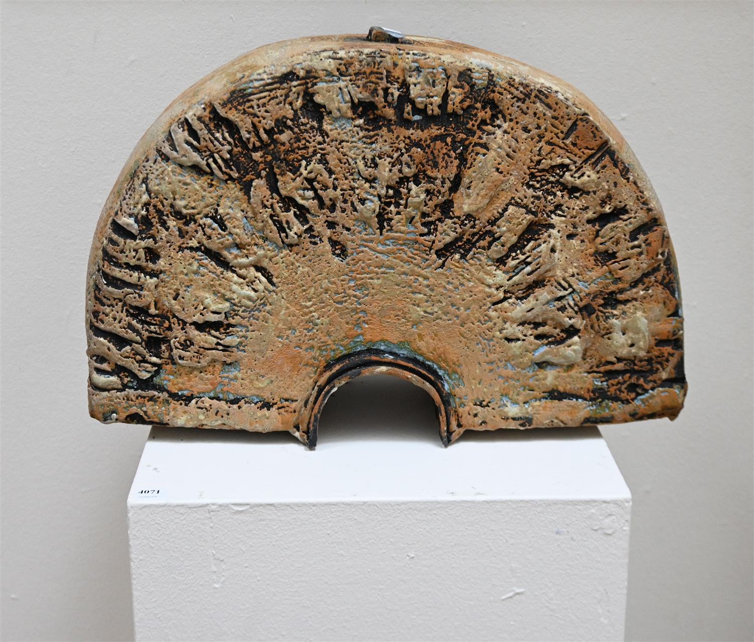 Losses, cracking and scratches across artwork, inherent to the finish of the work. One larger loss seen to lower edge approx 3cm. The work is fragile. The work is not accompained by a plinth.