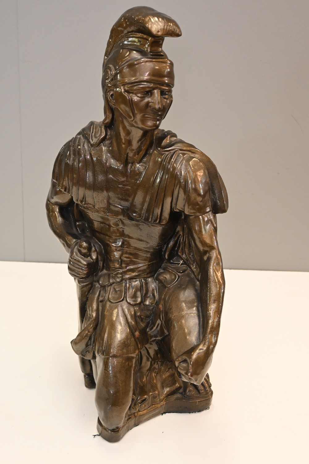 A BRASS EFFECT STATUE DEPICTING ROMAN FIGURE (A/F) (62H X 20W X 30D CM) (LEONARD JOEL DELIVERY SIZE: LARGE)
