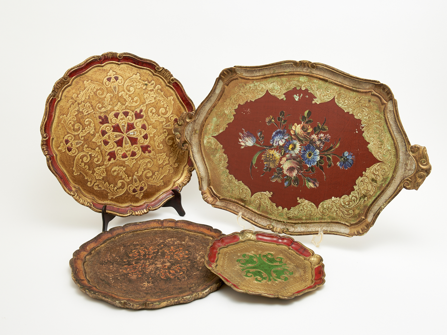 FOUR VINTAGE ITALIAN FLORENTINE GILT SERVING TRAYS W.60CM (LARGEST), LEONARD JOEL LOCAL DELIVERY: MEDIUM