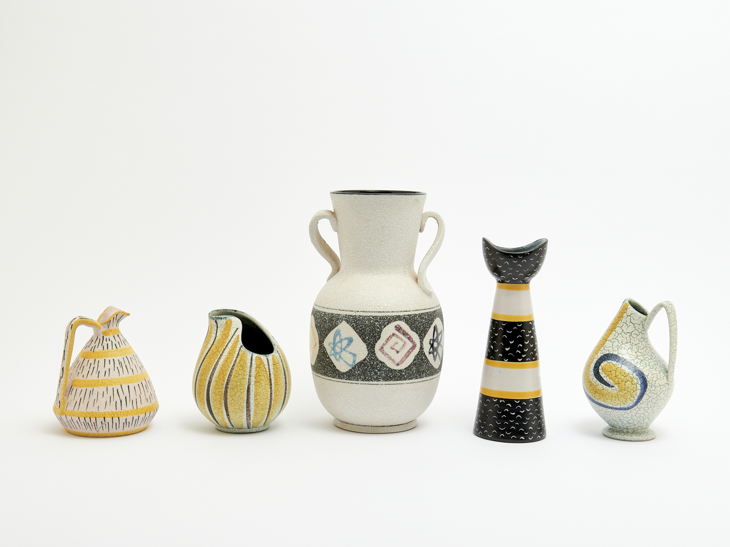 FIVE VINTAGE ITALIAN AND GERMAN HAND PAINTED VASES H.24CM (TALLEST), LEONARD JOEL LOCAL DELIVERY: MEDIUM