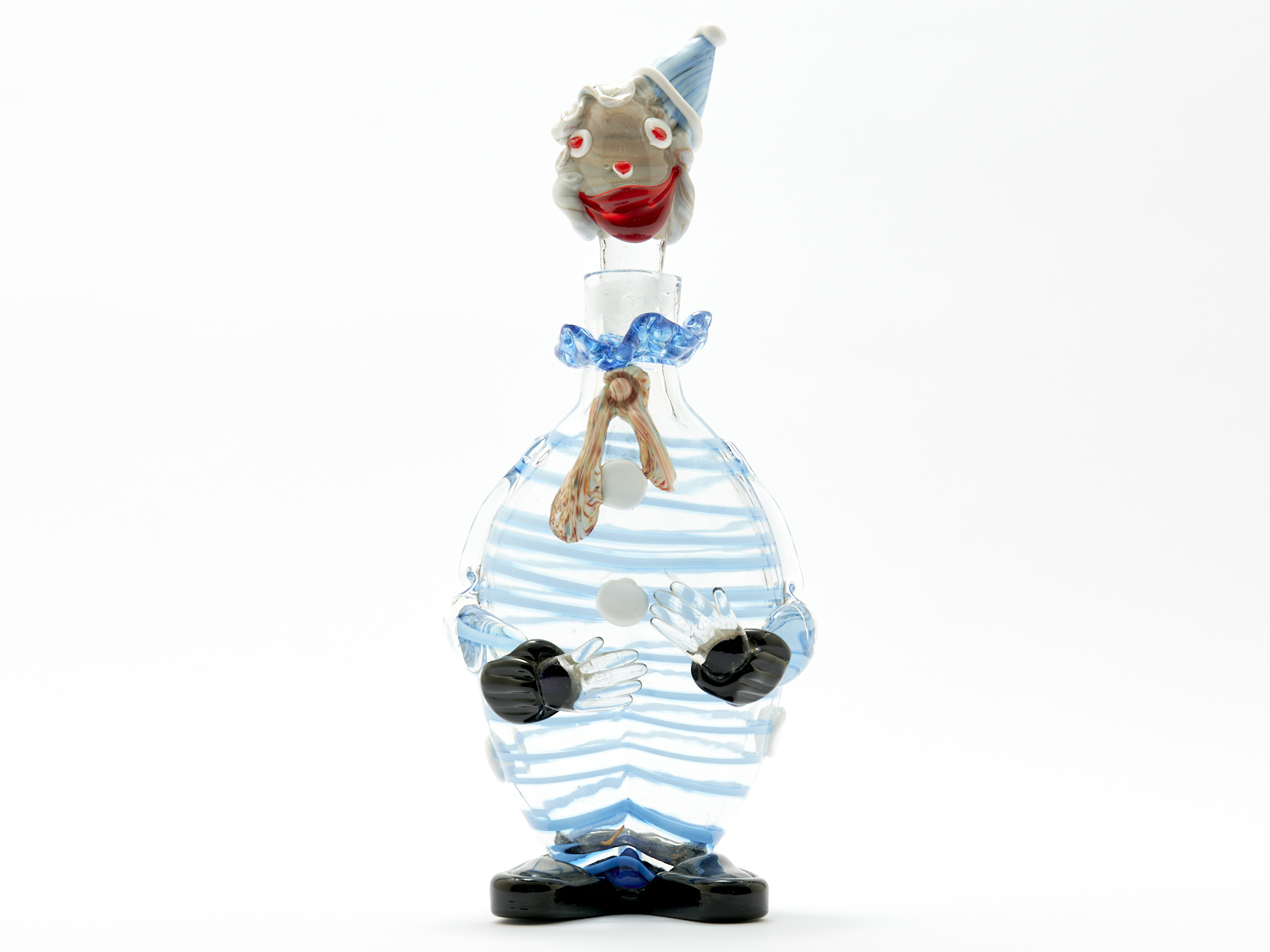AN ORIGINAL 1950S ITALIAN MURANO GLASS CLOWN DECANTER H.35CM (A/F), LEONARD JOEL LOCAL DELIVERY: SMALL