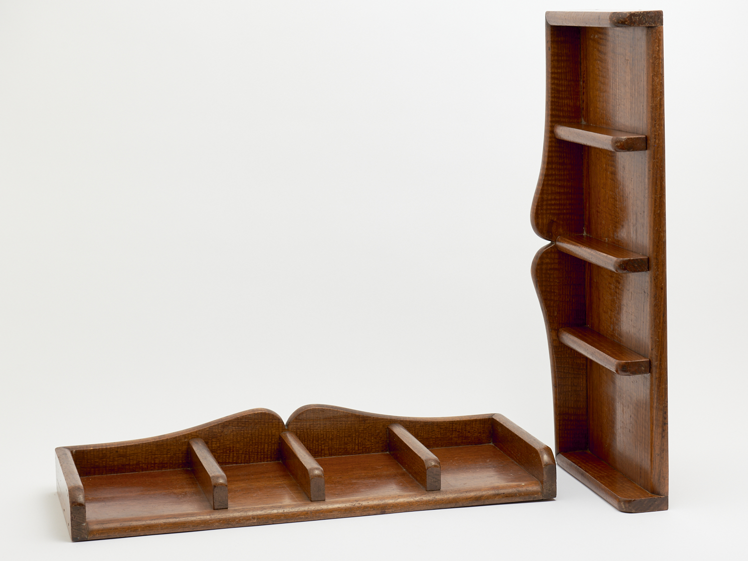 A PAIR OF AUSTRALIAN SILKY OAK SHOP DISPLAY DIVIDERS H.6.5 X W.63.5 X D.26.5CM (LARGEST), LEONARD JOEL LOCAL DELIVERY: MEDIUM