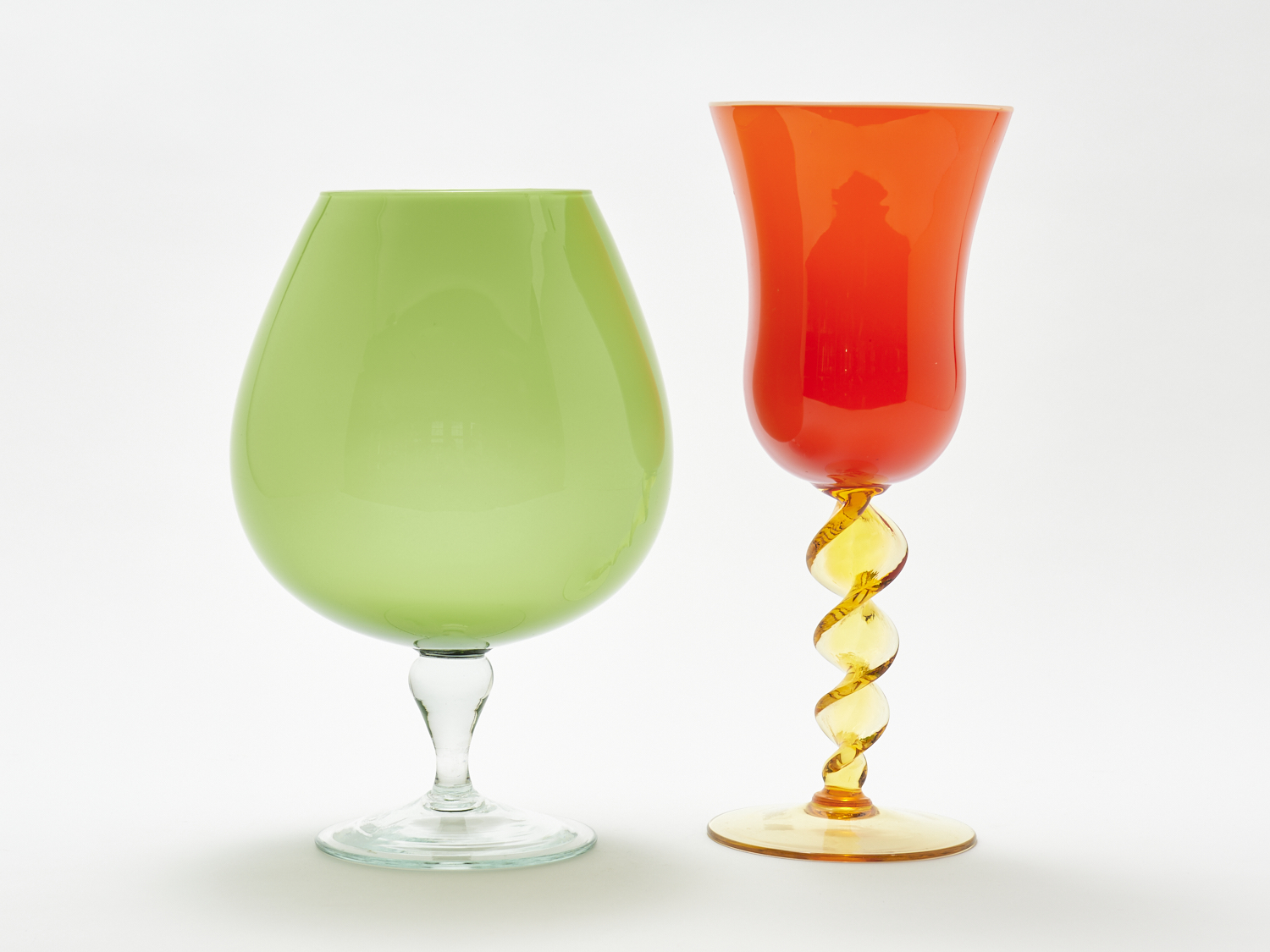 TWO VINTAGE GLASS GOBLET VASES H.30.5 (TALLEST) LEONARD JOEL LOCAL DELIVERY: MEDIUM