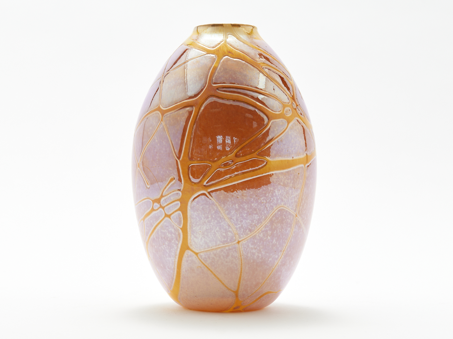 A VINTAGE ART GLASS TRAILED IRIDESCENT FINISHED VASE H.19.5CM, LEONARD JOEL LOCAL DELIVERY: SMALL