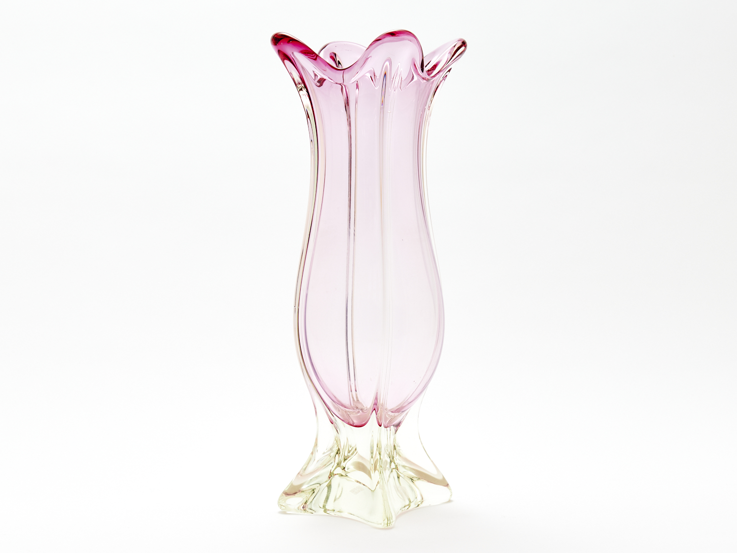 A LARGE ITALIAN MURANO PINK AND CLEAR GLASS VASE H.38CM, LEONARD JOEL LOCAL DELIVERY: SMALL