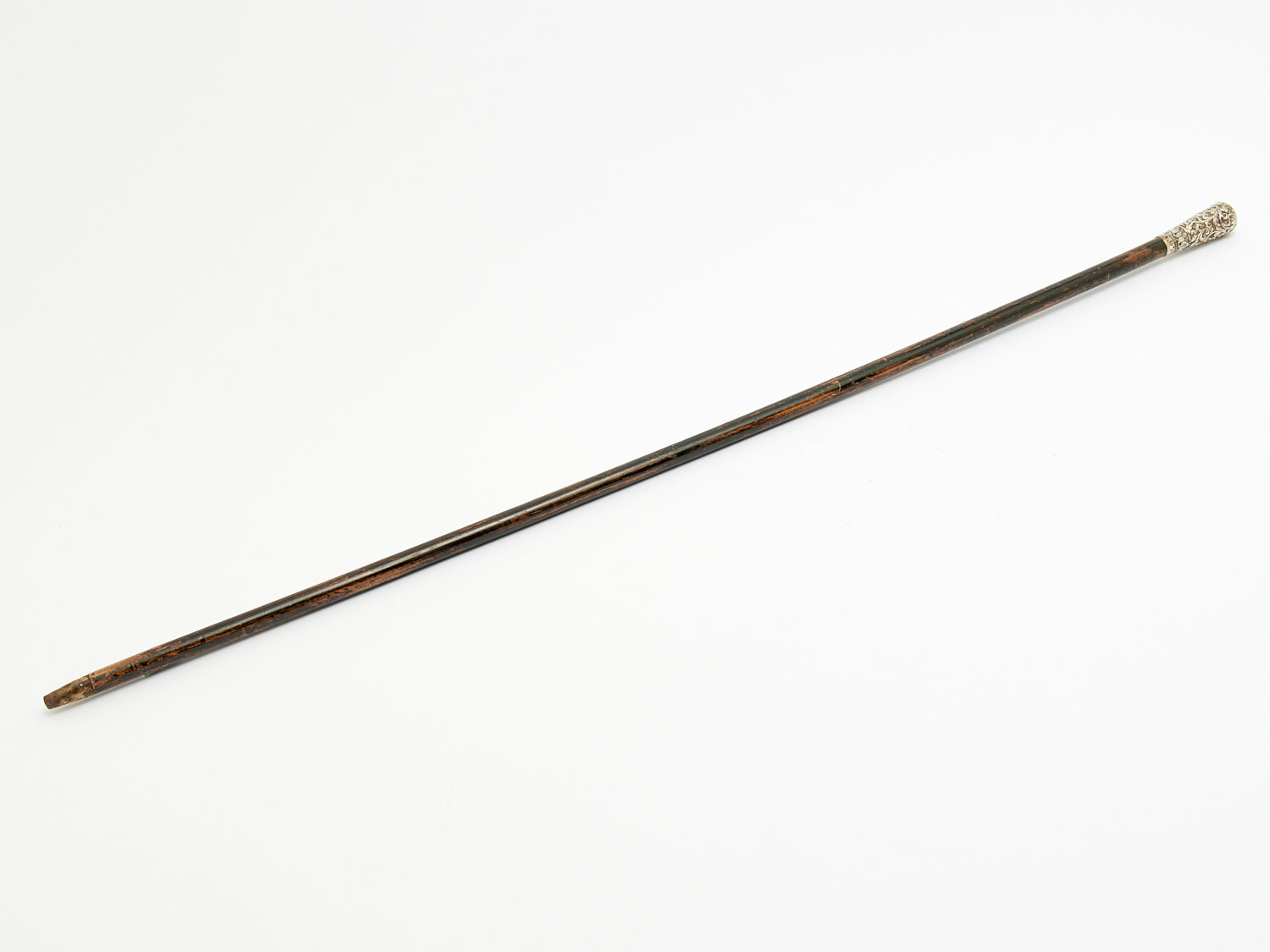 A 19TH CENTURY INDIAN SILVER TOPPED EBONISED WOODEN WALKING STICK H.82CM, LEONARD JOEL LOCAL DELIVERY: MEDIUM