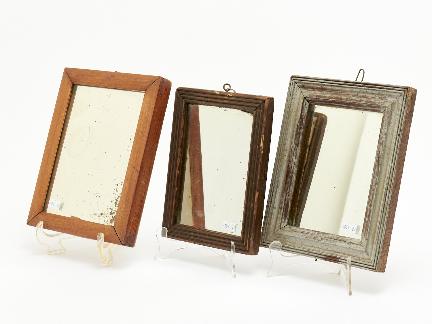 THREE WOODEN FRAMED MIRRORS H.8.5 X W.13.5CM (LARGEST), LEONARD JOEL LOCAL DELIVERY: SMALL