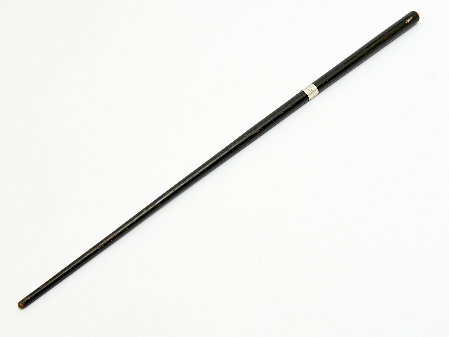 A SILVER MOUNTED EBONY MILITARY SWAGGER STICK L.51.5CM, LEONARD JOEL LOCAL DELIVERY: MEDIUM