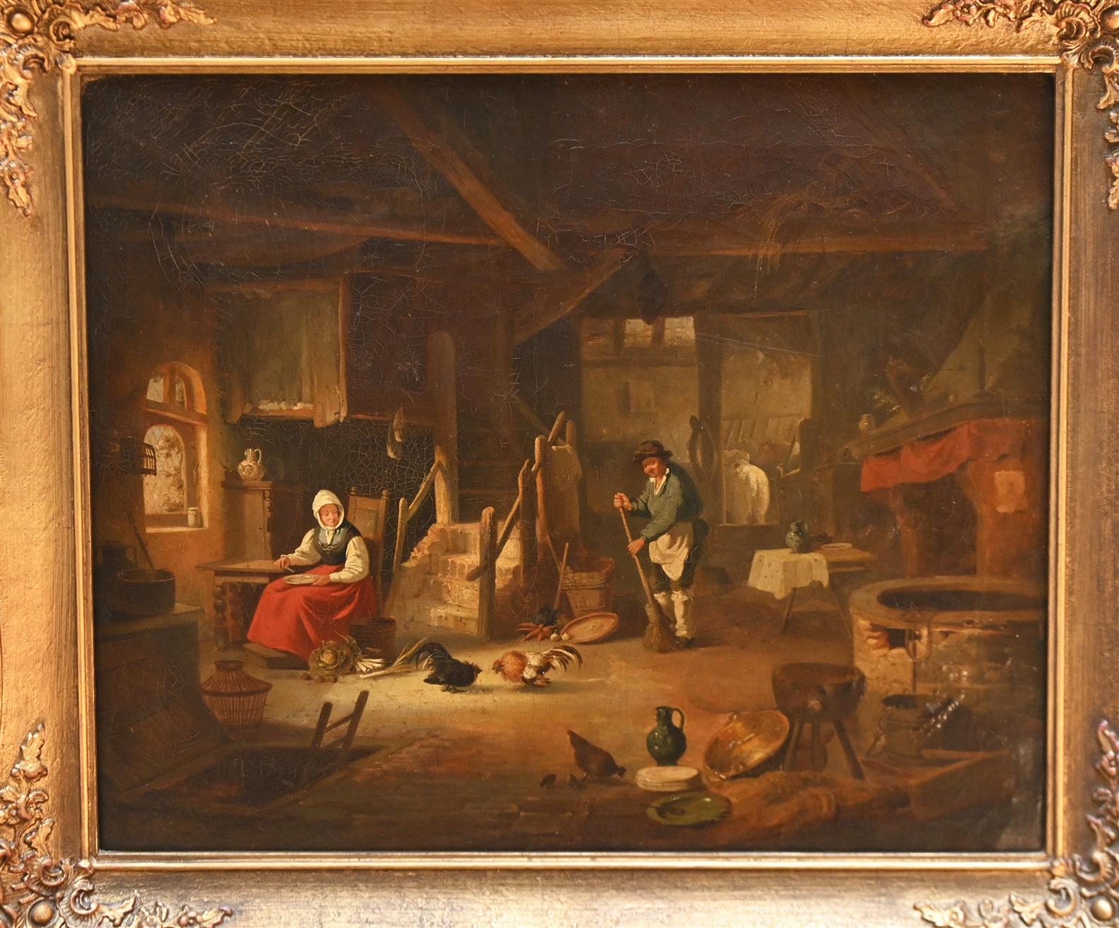 Craquelure throughout, with some minor pigment loss resulting. Evidence of previous repair with multiple patches to verso. Minor bubbling to canvas in lower right quadrant.
