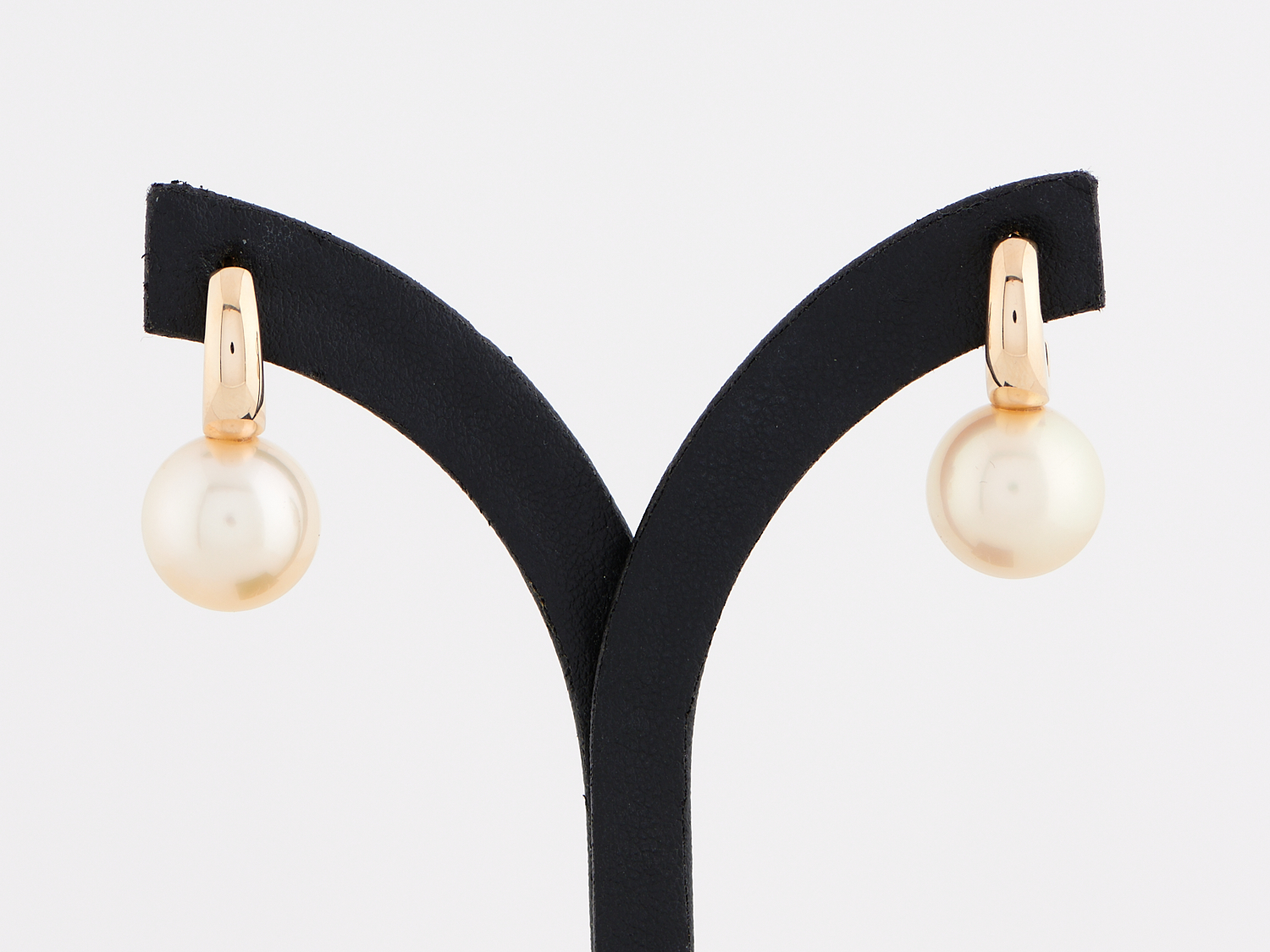 A PAIR OF SOUTH SEA PEARL EARRINGS IN 9CT GOLD, THE PEARLS MEASURING 13.6MM, TO POST AND BUTTERFLY FITTINGS