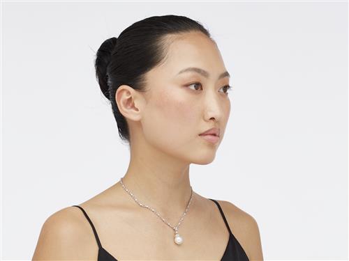 18CT WHITE GOLD, SOUTH SEA PEARL AND DIAMOND PENDANT NECKLACE