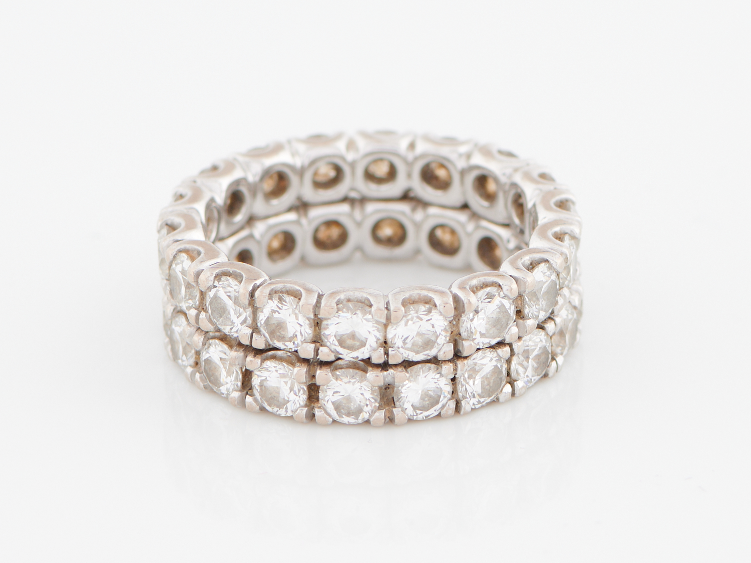 A PAIR OF DIAMOND ETERNITY BANDS, RING SIZE O-P, THE DIAMONDS TOTALLING 5.00CTS