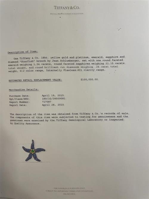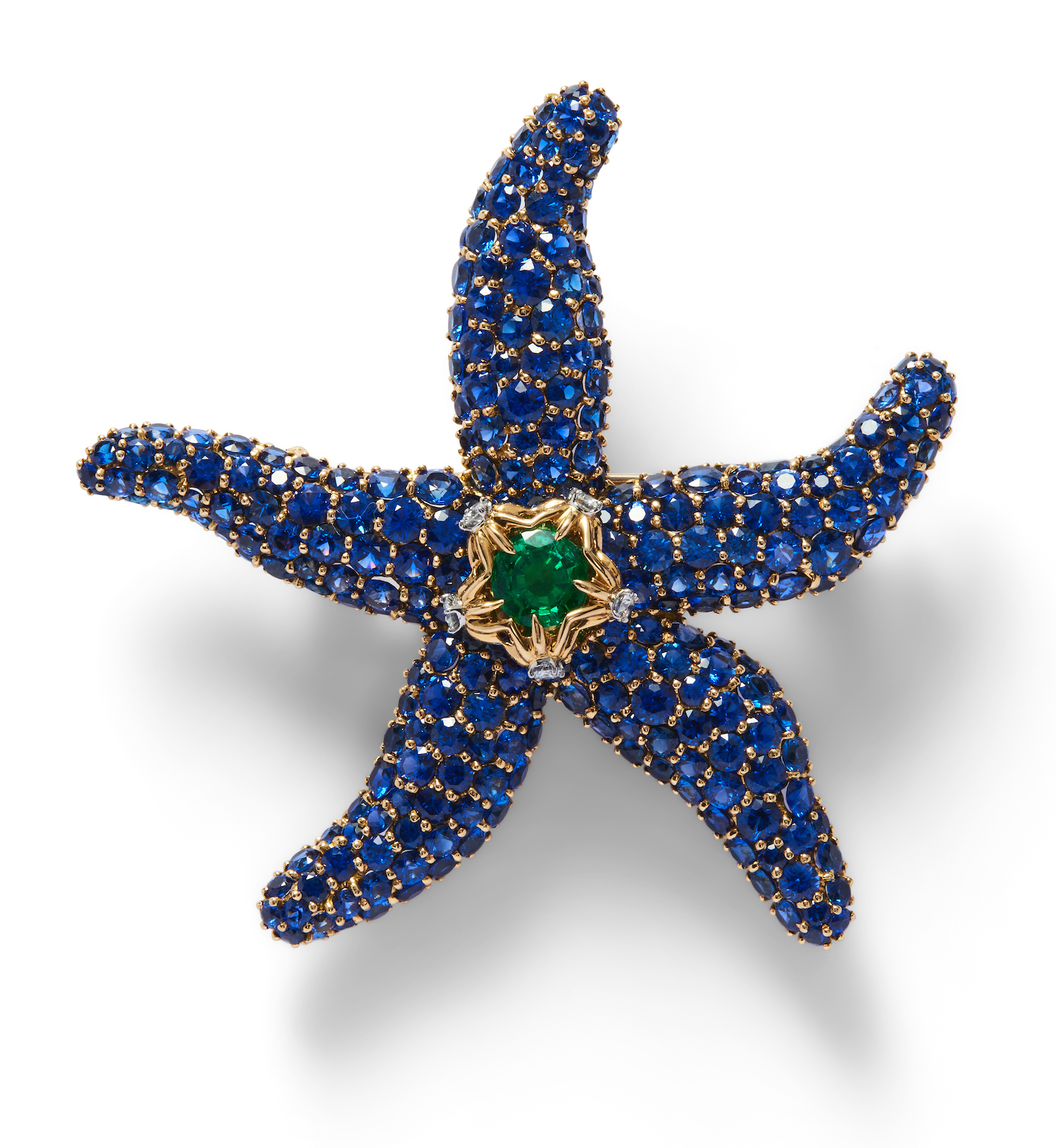 JEAN SCHLUMBERGER FOR TIFFANY & CO. SAPPHIRE, EMERALD AND DIAMOND 'STARFISH' BROOCH, CIRCA 2015