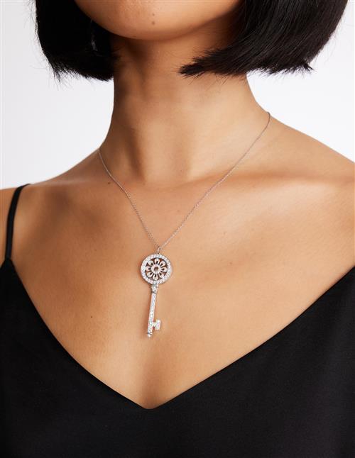 Modelled as an openwork key, decorated with brilliant-cut diamonds, the diamonds together weighing approximately 1.18 carats, mounted in 18ct white gold, length 53mm, signed T&Co. for Tiffany & Co.