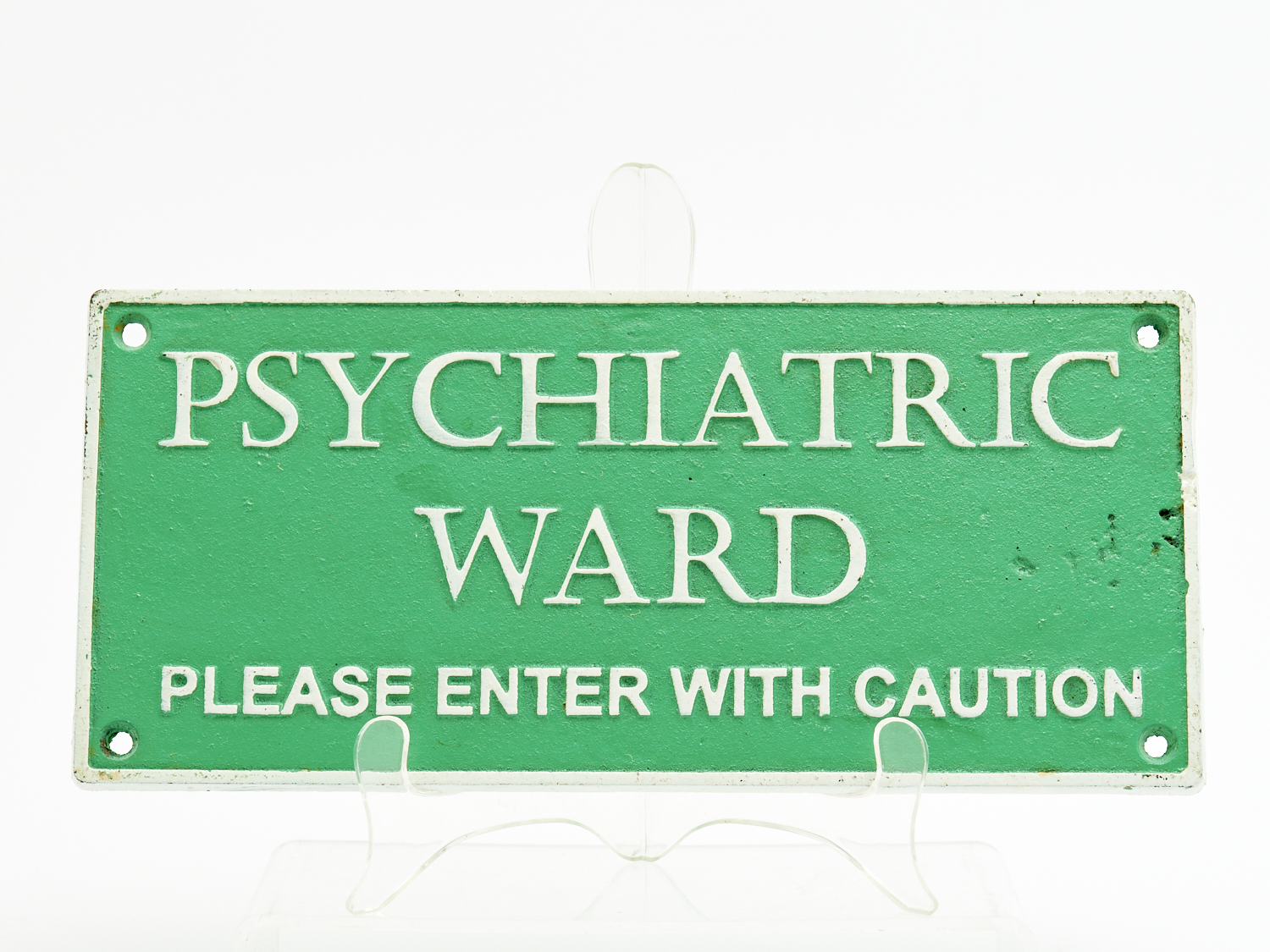A CAST IRON SIGN "PSYCHIATRIC WARD" H.12.5 X W.27.5CM, LEONARD JOEL LOCAL DELIVERY: SMALL