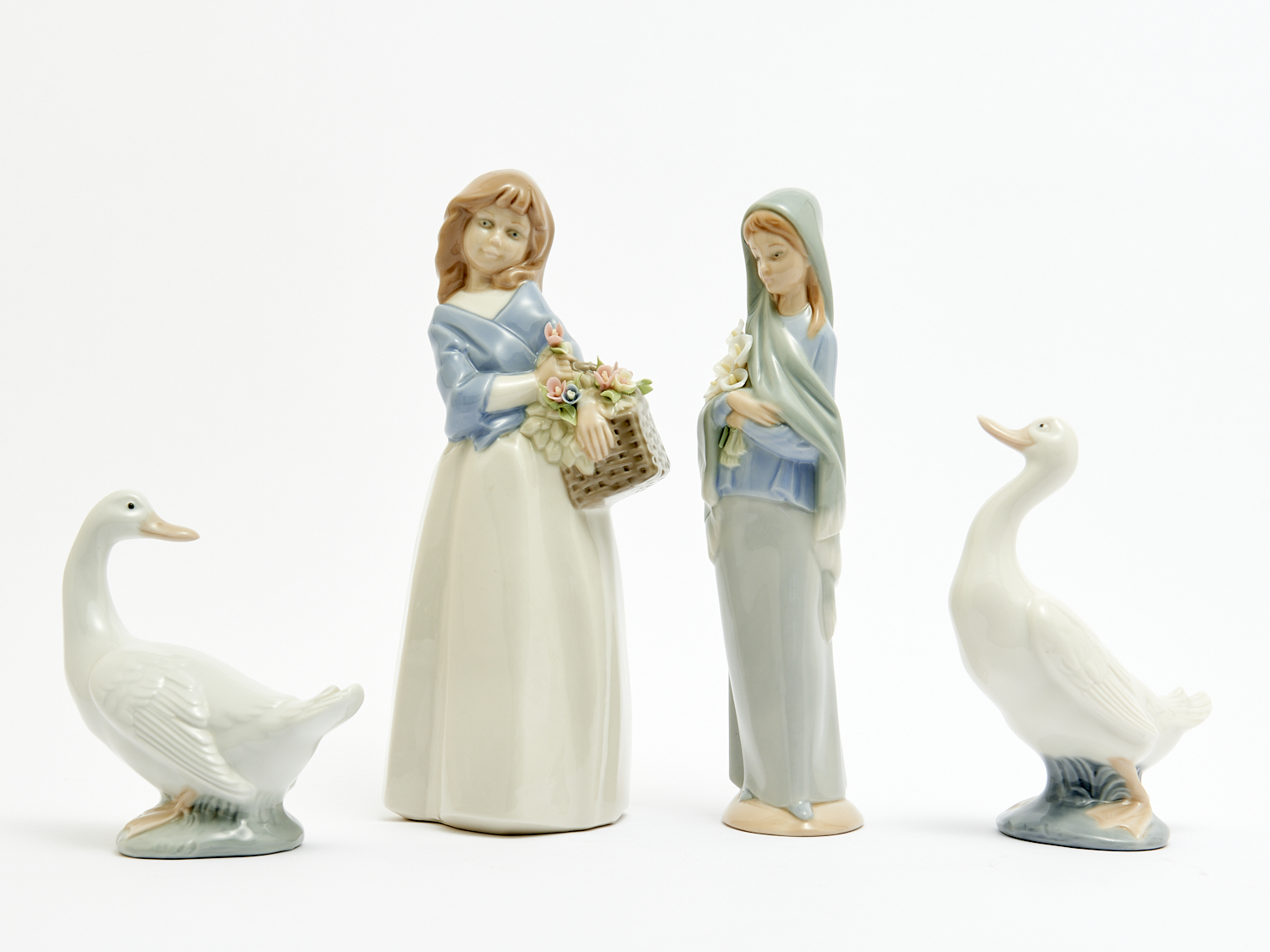 A GROUP OF SIX LLADRO AND NAO FIGURES, TWO IN ORIGINAL BOXES H.25CM (TALLEST), LEONARD JOEL LOCAL DELIVERY: MEDIUM