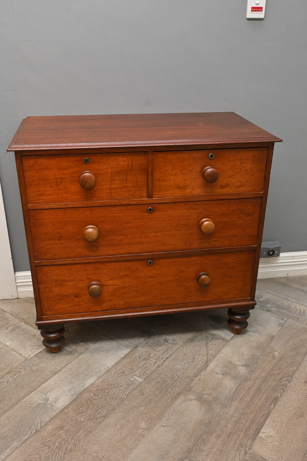 AN EARLY VICTORIAN AUSTRALIAN CEDAR CHEST OF DRAWERS (A/F) (88H X 94W X 50D CM) (PLEASE NOTE THIS HEAVY ITEM MUST BE REMOVED BY CARRIERS AT THE CUSTOMER'S EXPENSE. LEONARD JOEL STAFF CANNOT ASSIST CARRYING THIS ITEM) (X-LARGE ITEM)
