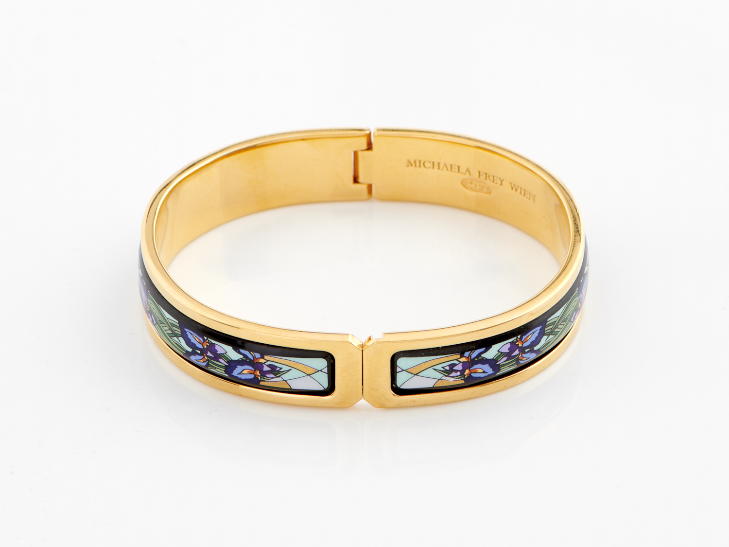 MICHAEL FREY WEIN, A GOLD PLATED HINGED BANGLE, INNER CIRCUMFERENCE 170MM