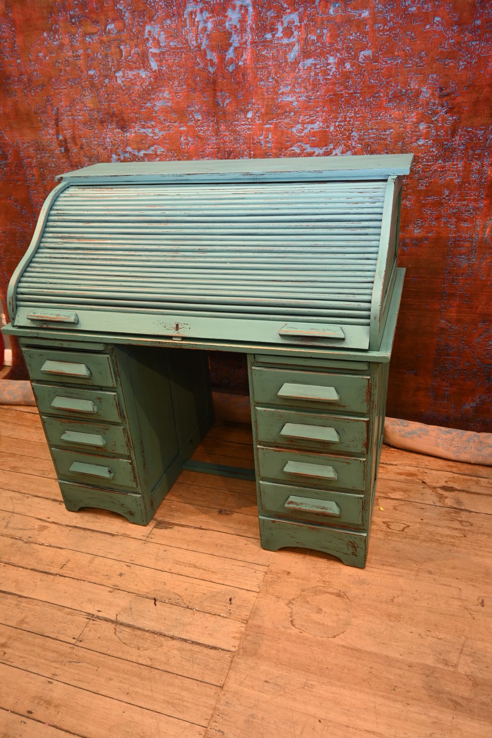 AN EARLY 20TH CENTURY PAINTED ROLL TOP DESK (A/F) (119H X 122W X 76D CM) (PLEASE NOTE THIS HEAVY ITEM MUST BE REMOVED BY CARRIERS AT THE CUSTOMER'S EXPENSE. LEONARD JOEL STAFF CANNOT ASSIST CARRYING THIS ITEM) (X-LARGE ITEM)
