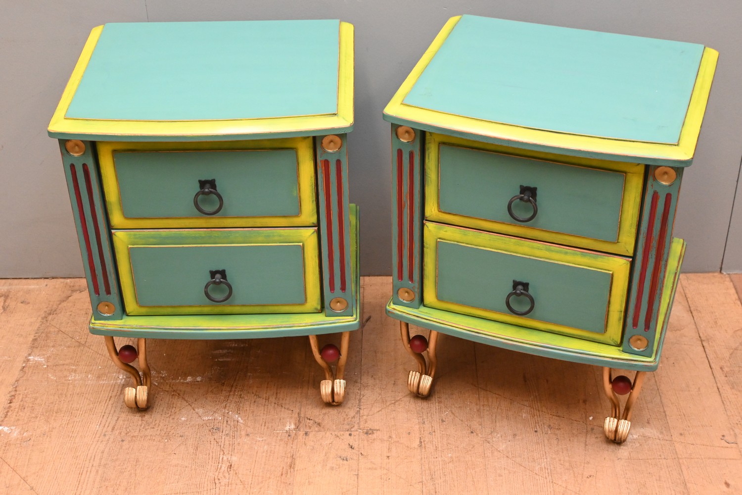 A PAIR OF PAINTED BEDSIDE TABLES (60H X 45W X 38D CM) (LEONARD JOEL DELIVERY SIZE: LARGE)
