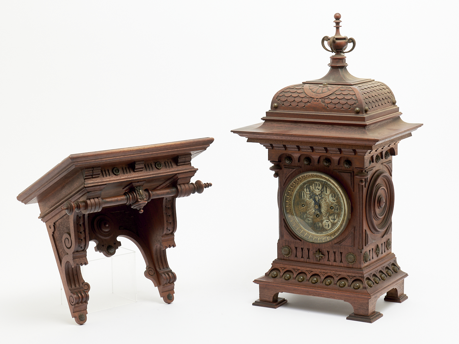 A LATE 19TH CENTURY EUROPEAN WALNUT-CASED BRACKET CLOCK, WITH ORIGINAL BRACKET H.80.5CM, LEONARD JOEL LOCAL DELIVERY: MEDIUM