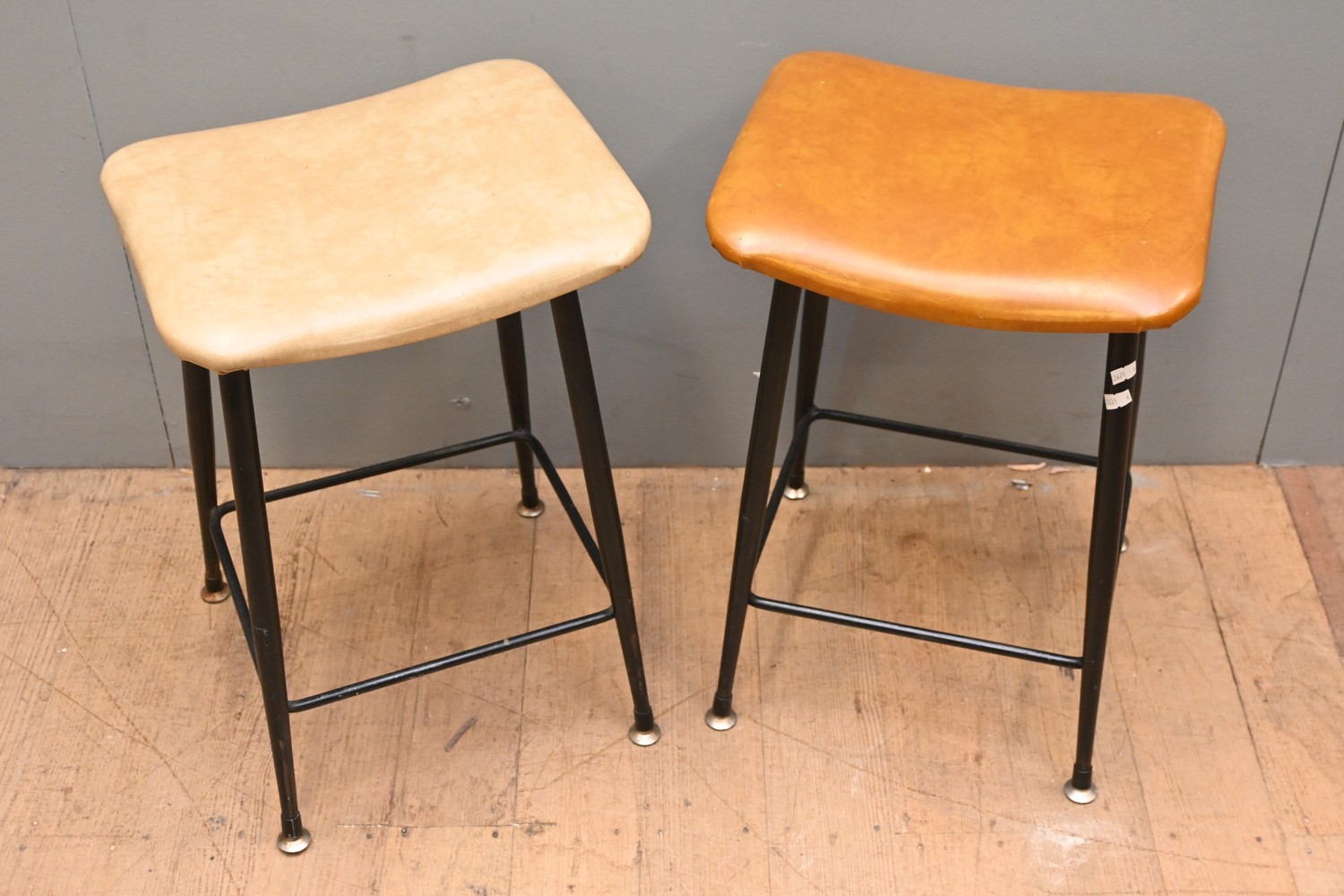 TWO RETRO STOOLS (52H X 36W X 30D CM) (LEONARD JOEL DELIVERY SIZE: LARGE)